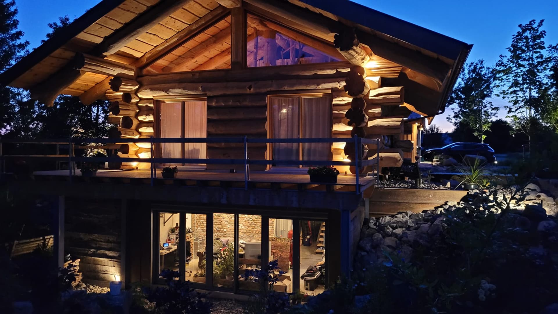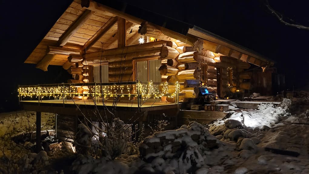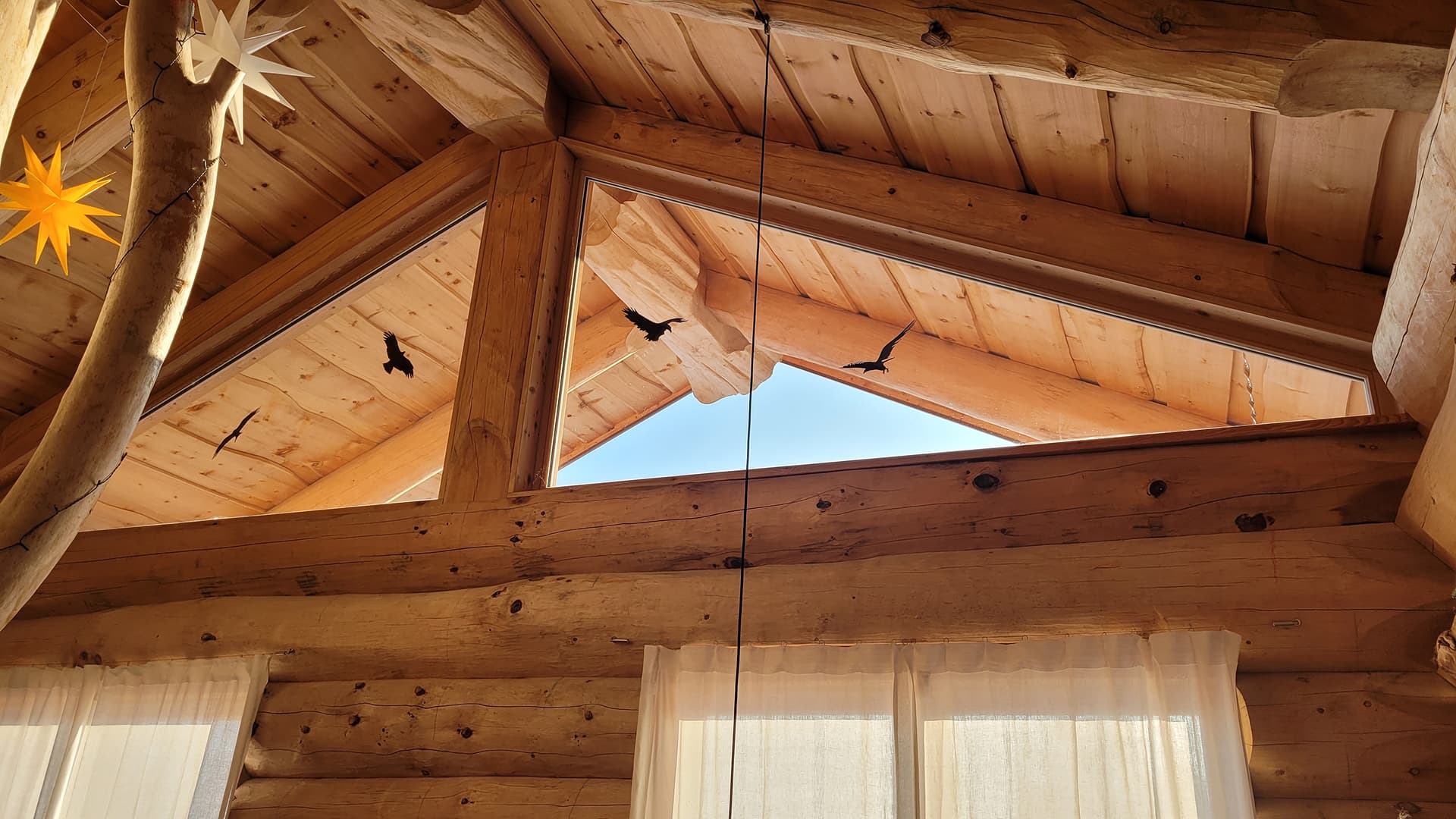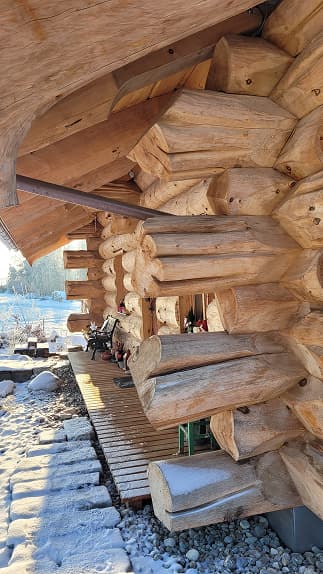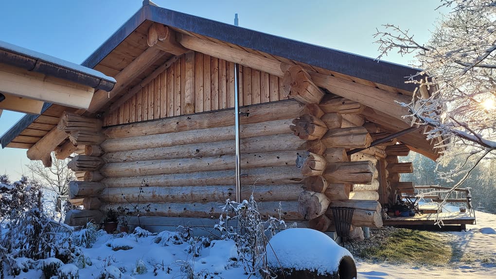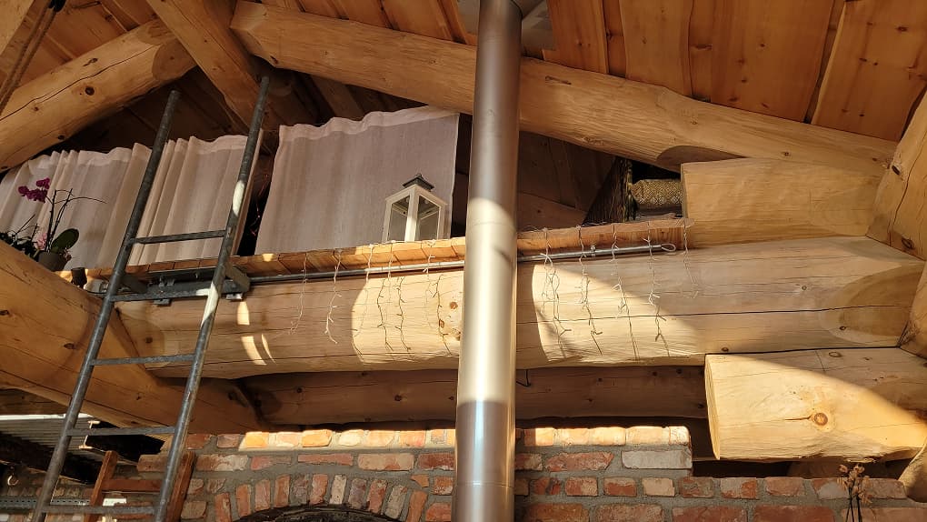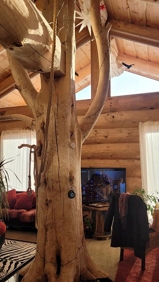 В бревенчатой конструкции дома использовано дерево с сохранёнными ветвями — особый элемент интерьера, который стал символом фамильного дерева и связи поколений. Этот приём придал дому индивидуальный характер и наполнил пространство личным смыслом, важным для семьи заказчика.